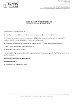 AcousticGyps M1 არის კომბინირებული ხმის საიზოლაციო პანელი, რომელიც შედგება მაღალი სიმკვრივის არმირებული თაბაშირ-მუყაოსგან და ელასტიური მემბრანისგან. გარე ფენა დამზადებულია ორთქლისა და ქარსაწინააღმდეგო საფარით, მექანიკური ზემოქმედებისგან დასაცავად. ასრულებს ხმის საიზოლაციო ფენის როლს კედლების, ჭერის, ტიხრების კარკასულ –მოსაპირკეთებელ კონსტრუქციებში, საბოლოო მოპირკეთება ხდება GKLZ – ფილებით. სპეციალურად შემუშავებული პანელების კონსტრუქცია უზრუნველყოფს ხმის იზოლაციის მაღალ მაჩვენებლებს და ვიბრაციის ჩახშობას სიხშირის სამუშაო დიაპაზონში.